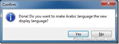 5. Vistalizator will take a few minutes to complete the language pack installation. Once the language pack is installed, you will be given option to set the new language as the active one.
