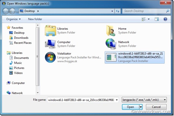 Windows 7 Home Premium and Professional Edition users can follow the steps given below to install a language pack: